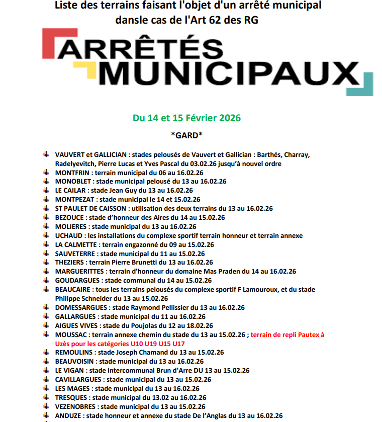 Le tirage au sort des 1/8ème de finale de la Coupe Gard Lozère aura lieu le Jeudi 26 Février 2026 à 18h30...