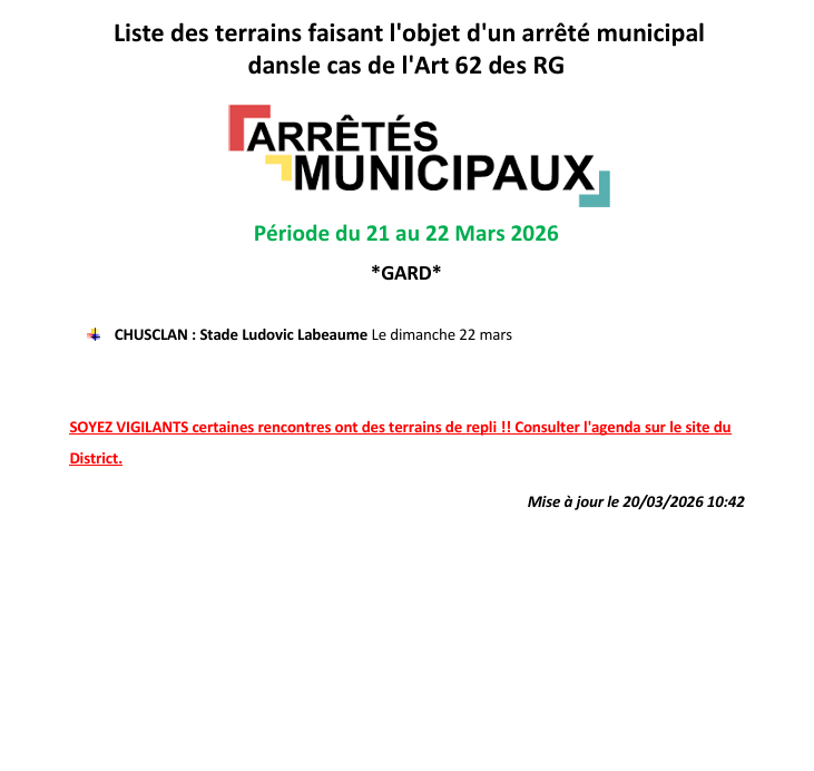 Une permanence (effective dès le 28 février) est mise en place pour éviter les déplacements inutiles (et les amendes induites) des équipes visiteuses et des officiels en cas d’intempéries subites ou de forfait de dernière minute à partir du vendredi 16h00 jusqu’au dimanche 09h00 en appliquant la pro...